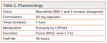 - Description: An oral neurokinin (NK) 1 and 3 receptor antagonist.